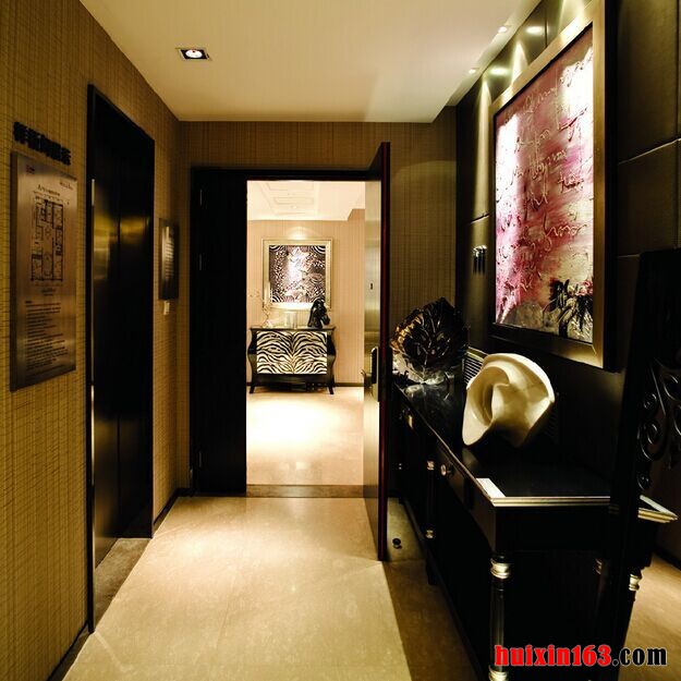 客厅中的装饰色彩比较大胆,一款玫粉色的电视柜非常的吸引人,同时艳丽的色彩也显得比较时尚,地面上一款黑色的毛绒地毯与白色的皮质沙发搭配在一起,在视觉上总会带给人们一定的冲击,但这样的搭配也可以带给人们一份温馨与舒适,平顶式的石膏板吊顶是哪个没有多余的装饰,只是在中间悬挂了一盏精致的吊灯,独特的外表加上精致的做工足以让客厅内的其它装饰都黯然失色,卧室的装饰风格都有所不同,其中一间使用了黑色带有淡淡条纹的壁纸做装饰,带给人们一种神秘感,同时暗淡的色彩使房间变得更加静谧,柔软舒适的床饰却可以在沉静的空间内带个人们一丝舒适。