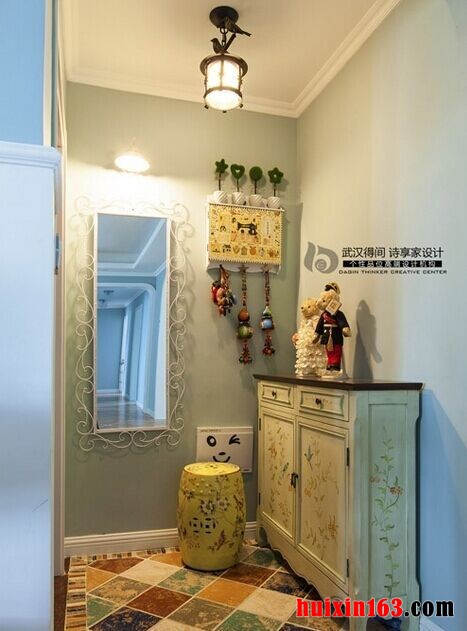 亮色系的空间环境,衬托出来的永远是一种明亮、舒适的美感,在客厅的装饰布置当中,五颜六色的色彩,让空间倾向于DIY的设计,不管是在造型的处理上还是色彩的搭配上都显得比较舒适惬意,整体给人的感官效果不失浪漫与唯美,沙发背景墙有实木的装饰,几幅壁画的悬挂也展现出业主不一样的欣赏水平,同时也是对个人气质与涵养的一种体现,实木添置的茶几,一个别致的陶瓷瓶,唯美的花朵装饰以及沙发旁一棵绿植的添加,通过富有活跃性的绿意来点缀空间环境,不仅起到一个很大的装饰作用,而且还活跃了空间的氛围,台灯的造型也显得美轮美奂。