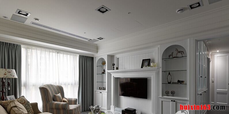 欧式风格的装修设计,其特点主要体现在造型的设计上,其实家庭的居室装修其空间格局基本上都是大同小异的,在色彩搭配和造型的设计上,那么是细微的改变所营造出来的效果也是天差地别的,例如客厅的装饰,沙发和吊顶的设计也适合简约风的装修,但在电视背景墙的处理上却将空间的风格拉入到另一种层次上,电视柜的造型以凹凸的形式呈现出来,正好展现出西方居室装修的特点,两边是储物柜的设计,摆放一些装饰品,一定程度上起到一个装饰的作用,同时也增加了空间的收纳功能,落地窗的设计搭配上轻质的窗帘,同样让空间的采光显得更加的明亮透彻。